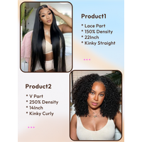 2 Wigs $185 for 22" Middle Lace Part Kinky Straight Hair And 250% Density 14" V...